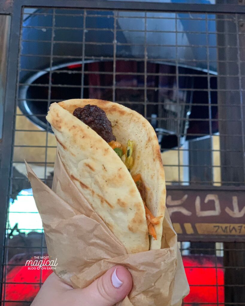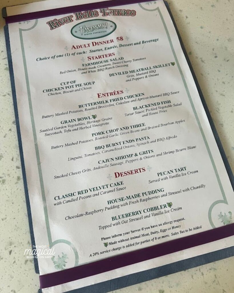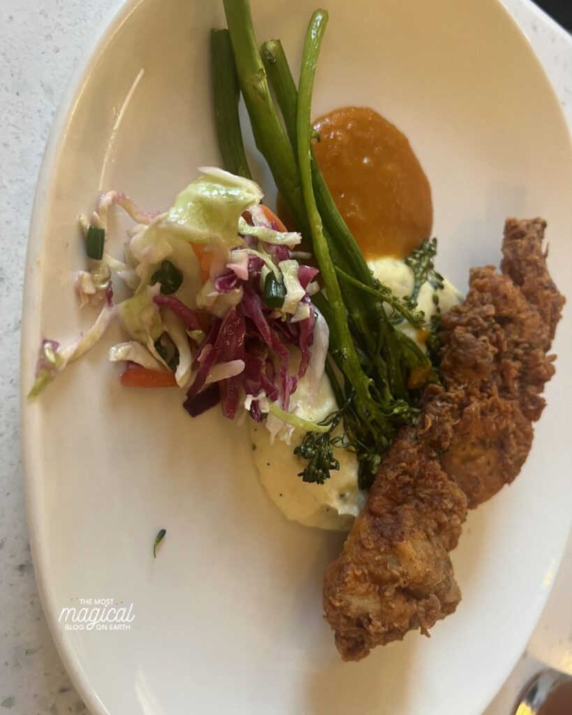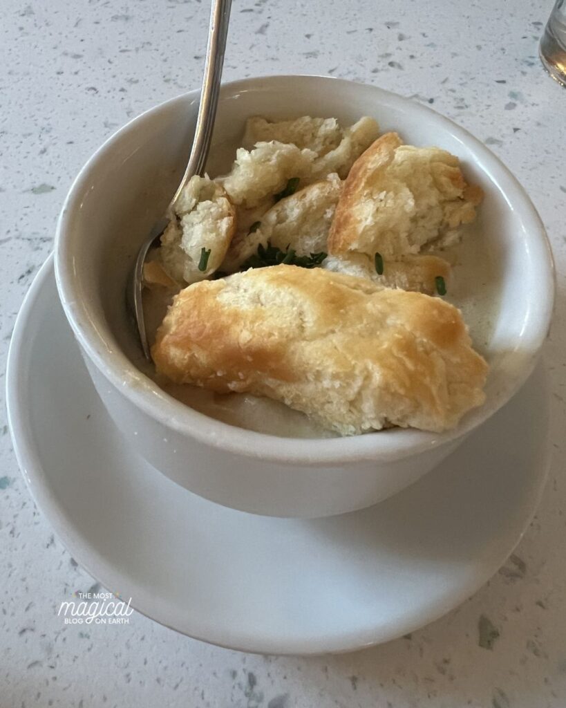 Southern-inspired dishes with indoor and outdoor seating along the Rivers of America. Often easier to book than other table service spots and a good mid-day reset. This one gets overlooked but I loved it! Such a beautiful atmosphere inside – you’ll feel like you are literally in New Orleans!